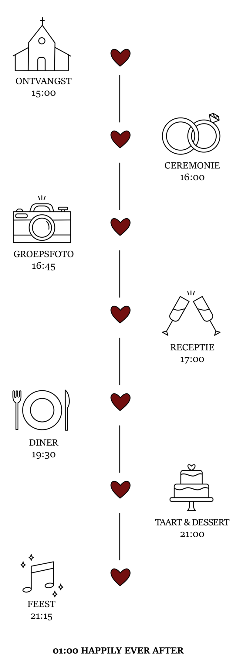 We kijken ernaar uit om deze speciale dag met jullie te vieren. Vanwege de intieme setting van onze bruiloft hebben we ervoor gekozen om deze dag alleen met volwassenen te beleven (adult-only).